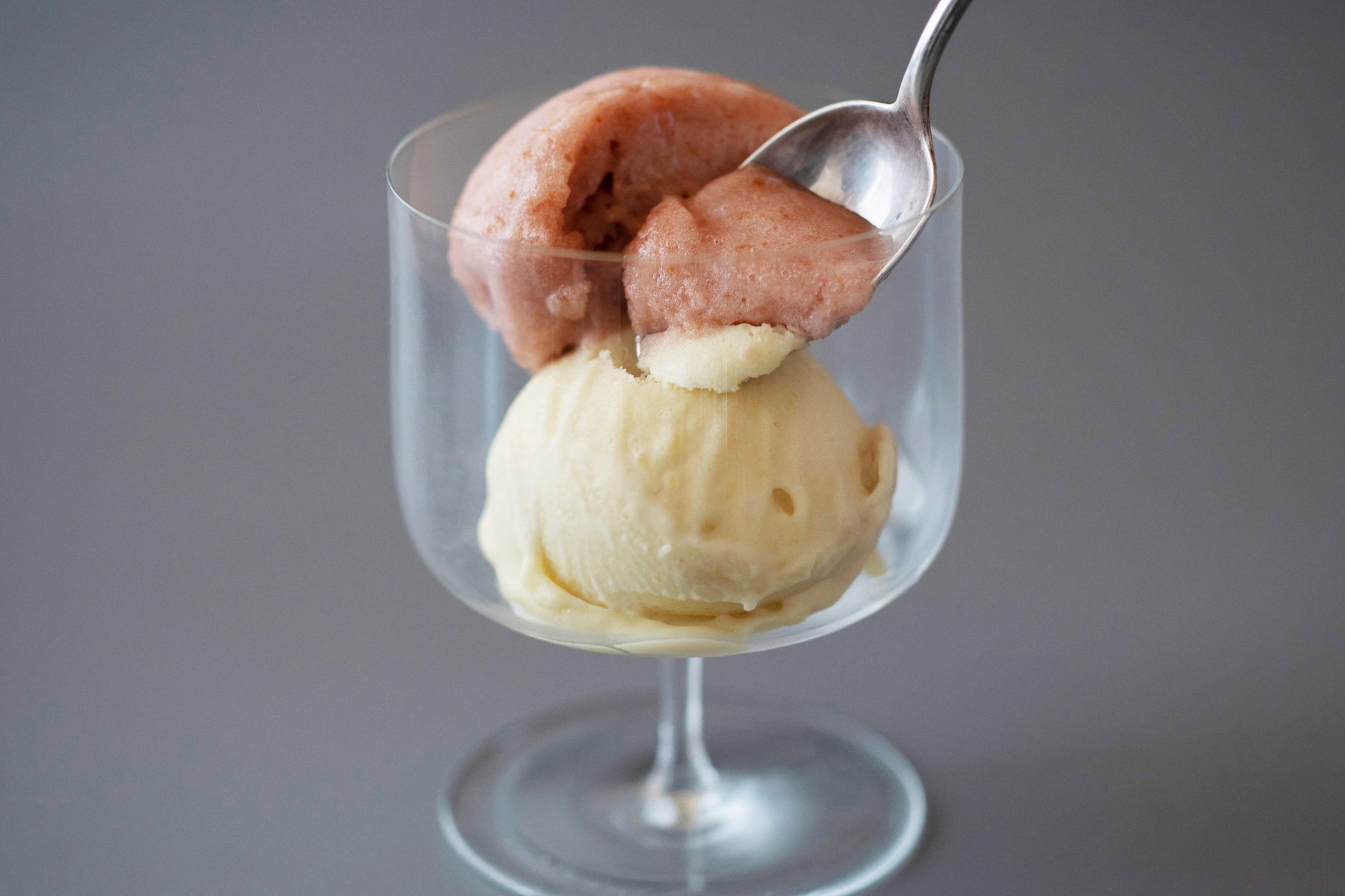 愛媛県西条市のペンタファームさんから届いたあまおとめをふんだんに使用した甘味たっぷりのソルベ。