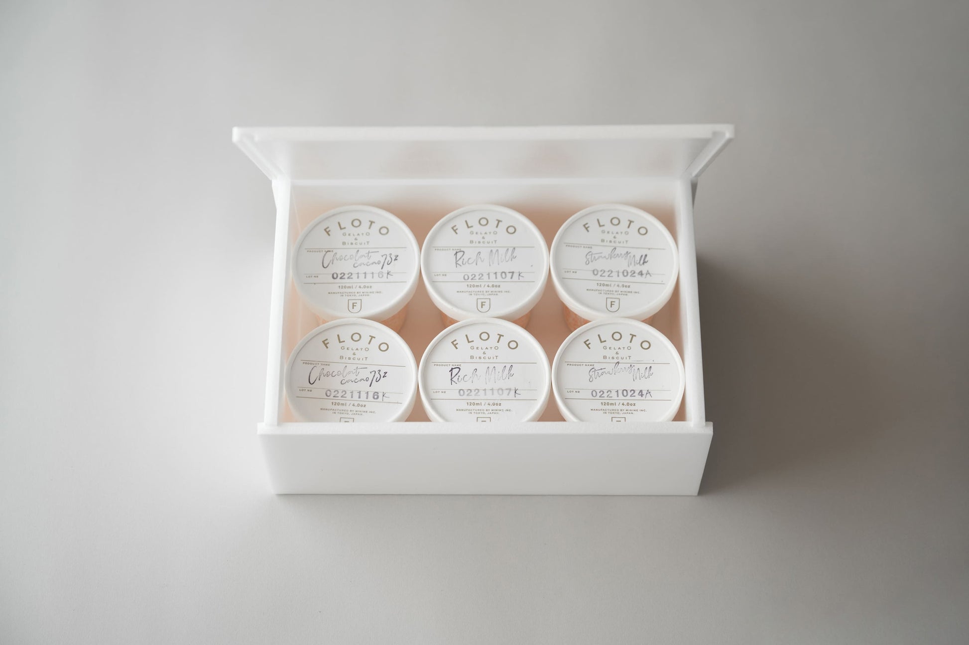 産地直送のフルーツを使用したジェラート6種を詰め合わせたフルーツジェラートBOX。(各種1個入り)